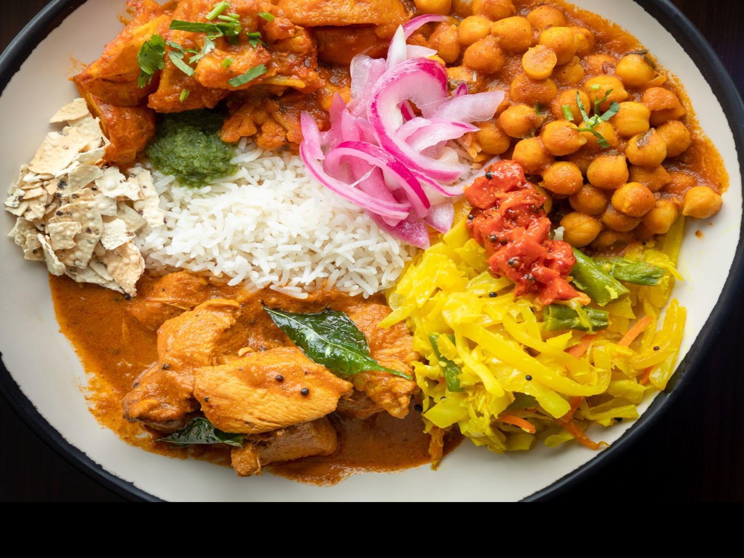ADVERTISMENT You can. Enjoy curry Biryani and kebabs in the action-packed dining room or grab it to-go for a delicious night at home. Pictured is the chicken tikka masala tandoori shrimp garlic naan and veggie samosas.